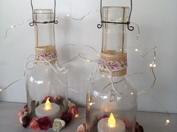 Botella aplanada decorada para poner bocaditos o colgar como decoración