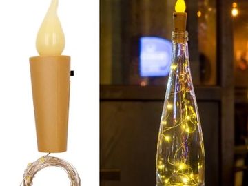 Focos Led forma de corcho para botella. Largo aprox. 2m. 20 luces Led Pila AG13